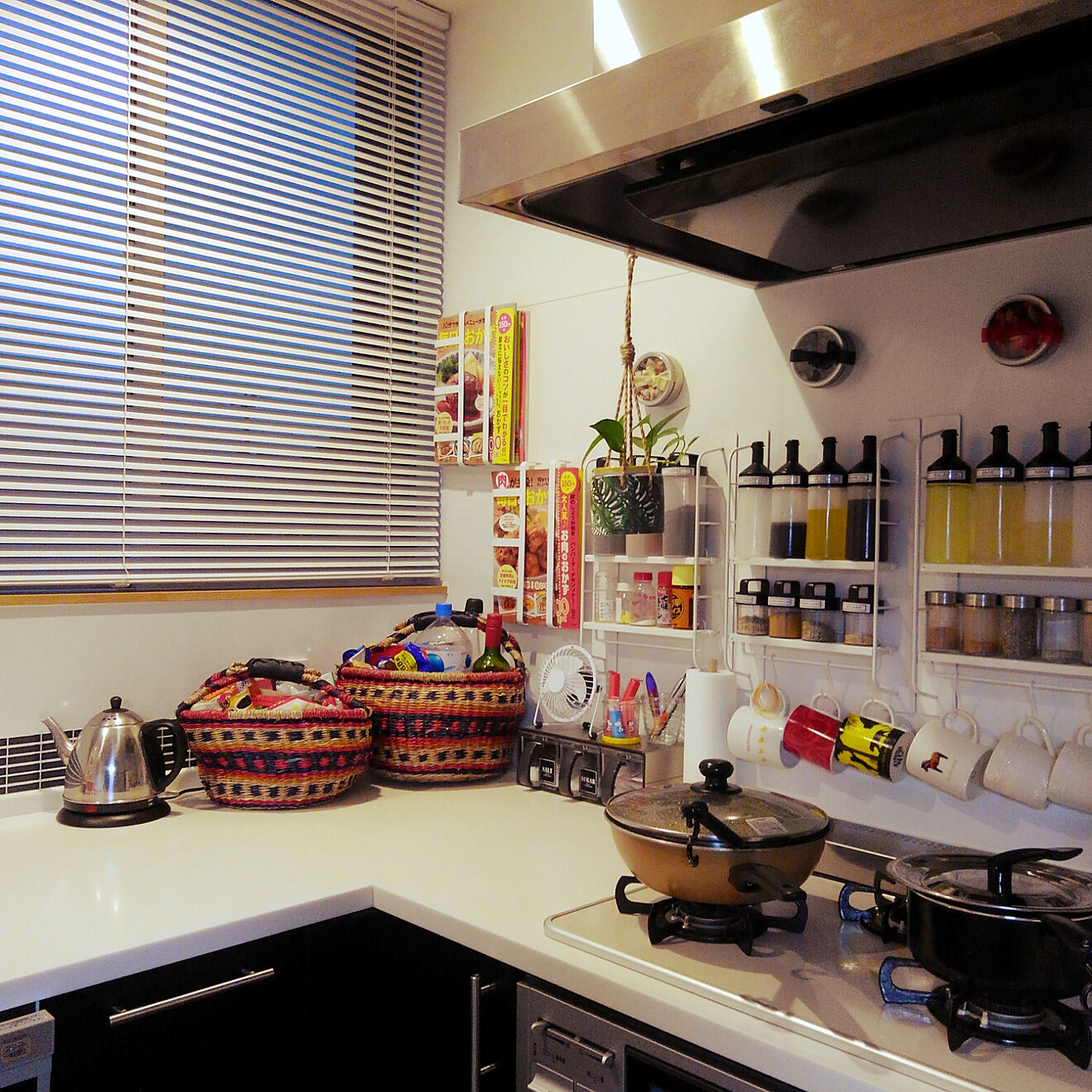 灶台的空间很小,所以他们都是巧妙利用各种置物架,即使只要有10cm的空间,也可以很好的放进置物架。