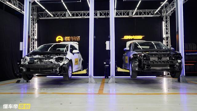 在拆解车门的时候,我们就发现,两款车的车门内部都是没有隔音棉的,但是门板内部有止振板。车内地板的隔音毡两车都有,材质都是回收棉。至于回收棉是否环保,我们分别取样,找到专业权威机构进行测试,大家记得关注第三期的节目。